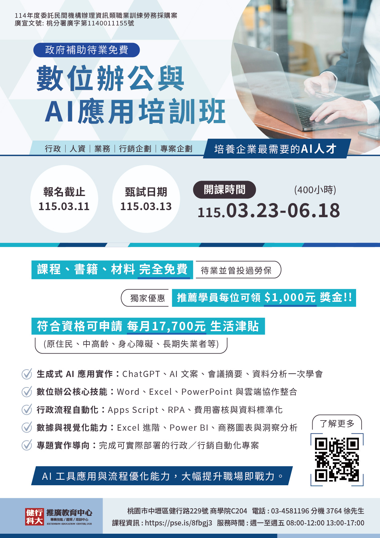 悠達天下/Google數位實體課程/恆逸資訊/中華汽車培訓中心/國立政治大學創新育成中心/中華民國全國青年創業總會/福爾摩沙雲創基地/臺北青年職涯發展中心/考試院/公務人力發展中心/苗栗衛生局公訓處