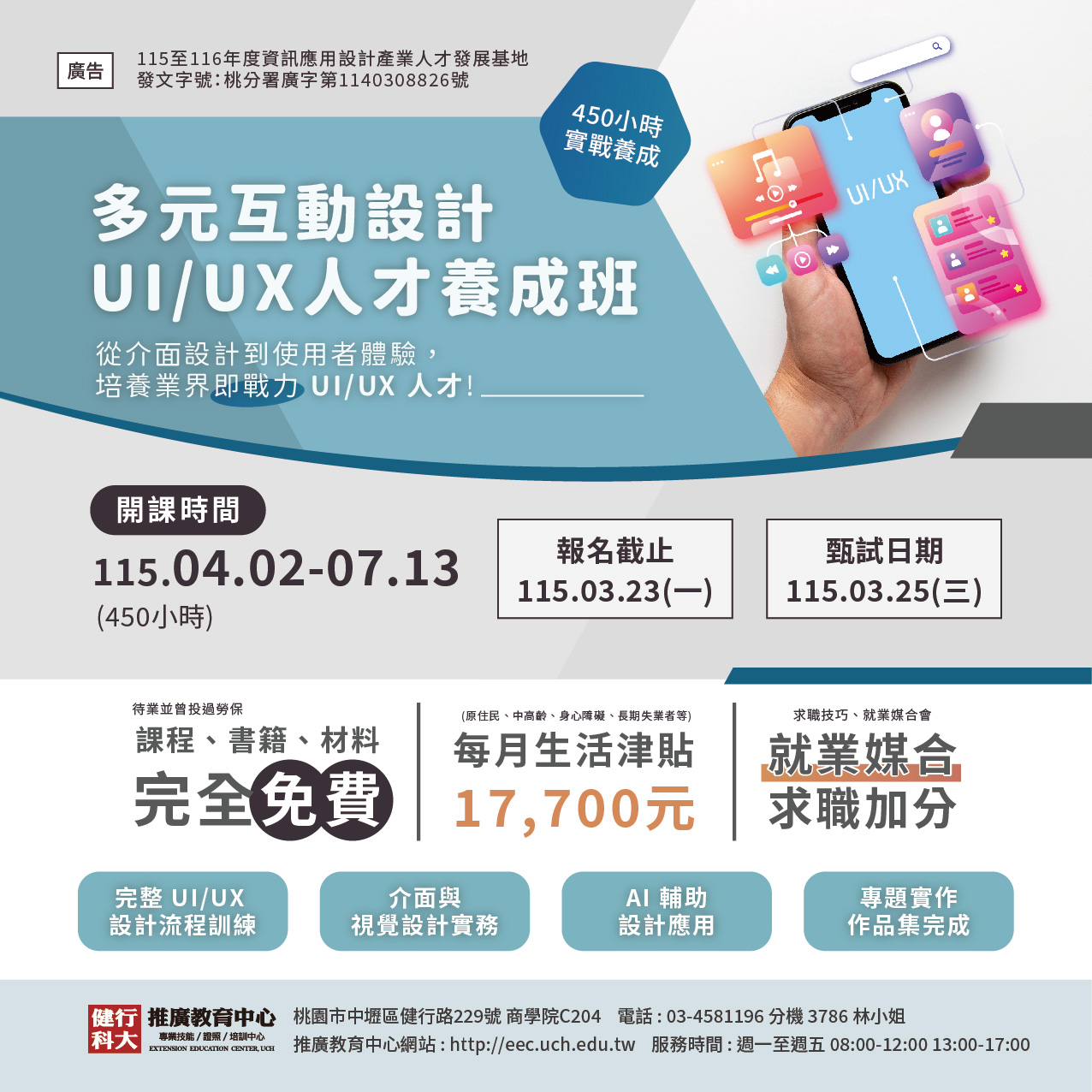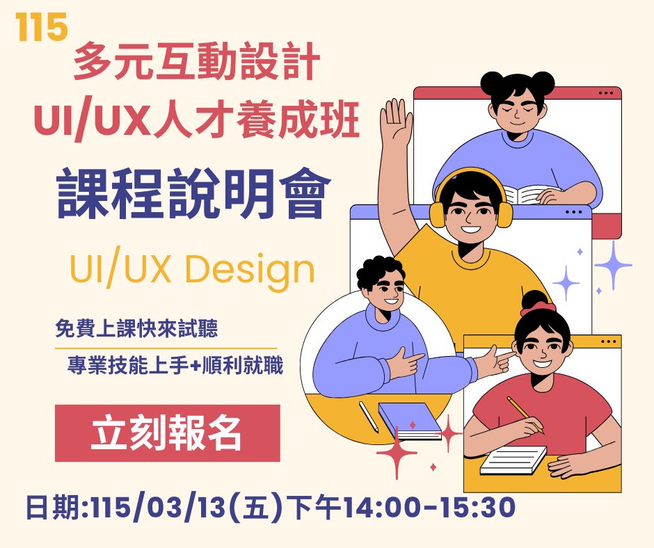 【多元互動設計UI/UX人才養成班】上課時間:115.04.02-115.07.13